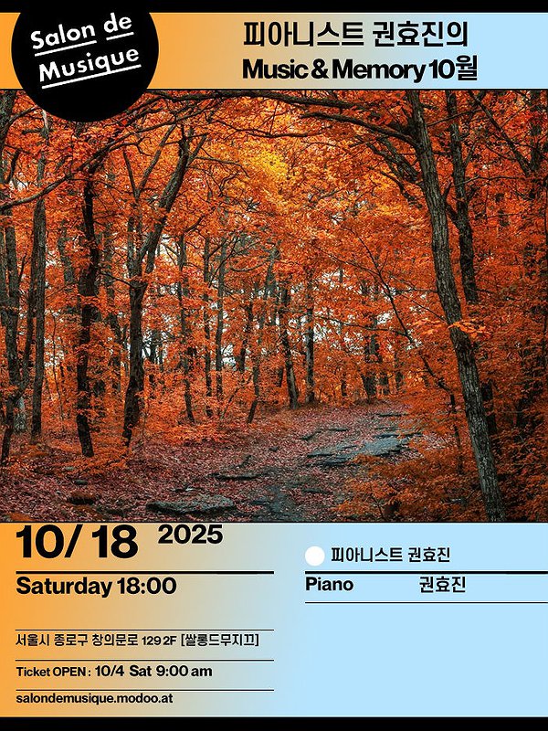 쌀롱드무지끄, 피아니스트 권효진의 Music & Memory (10월)